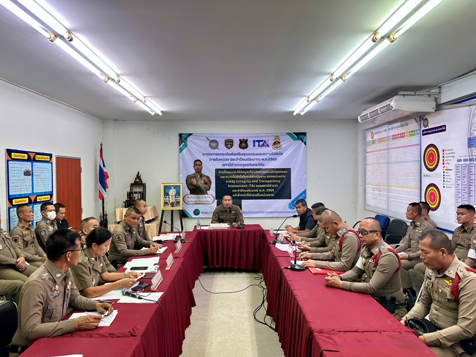 วันที่ 13 มีนาคม 2568 เวลา 13.30 น. พ.ต.อ.ภฤศ ภาสว่าง ผกก.สภ.กันทรวิชัย ประชุมคณะข้าราชการตํารวจ สภ.กันทรวิชัย คณะทํางานดําเนินการในการขับเคลื่อนและกํากับติดตามการประเมินคุณธรรมและความโปร่งใสในการการดําเนินงานของหน่วยงานภาครัฐ (Integrity and Transparency Assessment: ITA) ของสถานีตํารวจภูธรกันทรวิชัย ได้ชี้แจงให้ความรู้ความเข้าใจในการใช้,การบํารุงรักษา และการเก็บรักษาทรัพย์สินของทางราชการ ของบริจาค และการจัดเก็บของกลาง ให้กับข้าราชการตํารวจสภ.กันทรวิชัย โดยให้ปฏิบัติให้เป็นไปตามระเบียบของทางราชการอย่างเคร่งครัด และประกาศนโยบายต่อต้านการรับสินบน (Anti-Bribery Policy) และการไม่รับของขวัญของกํานัลหรือประโยชน์อื่นใด (No Gift Policy) จากการปฏิบัติหน้าที่ ณ ห้องประชุม