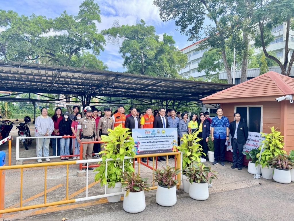 พ.ต.ท.ปรีชา พลพงษ์ รอง ผกก.ป.สภ.กันทรวิชัย เข้าร่วมเปิดโครงการนวัตกรรมความปลอดภัยทางถนน ( เครื่องมือเพื่อยกระดับความปลอดภัยทางถนน ด้วยระบบไม้กั้น เข้า – ออก โรงจอดรถจักรยานยนต์แบบอัตโนมัติสำหรับผู้สวมหมวกนิรภัย และระบบบันทึกข้อมูลผู้สวมหมวกนิรภัย / ผู้ที่ไม่สวมหมวกนิรภัย บริเวณทางเข้ามหาวิทยาลัย )