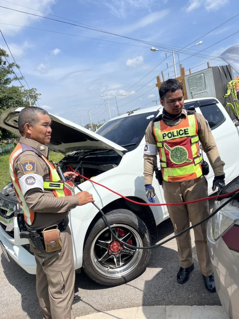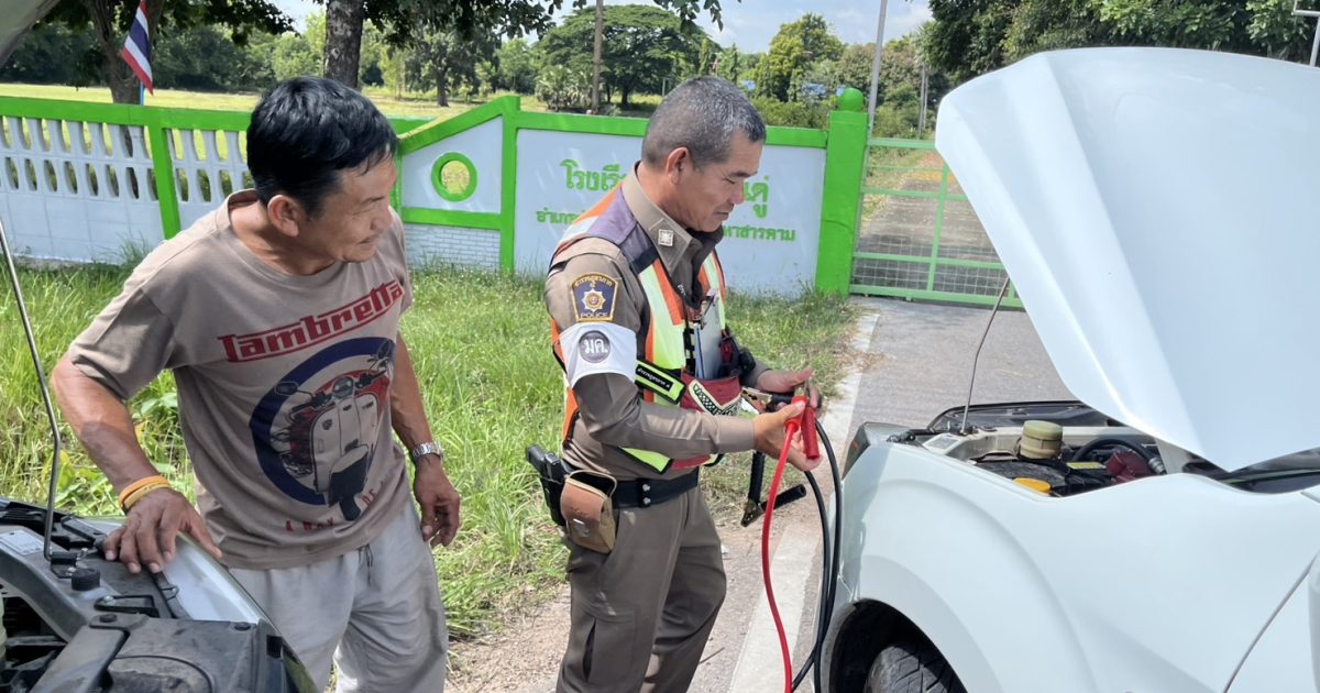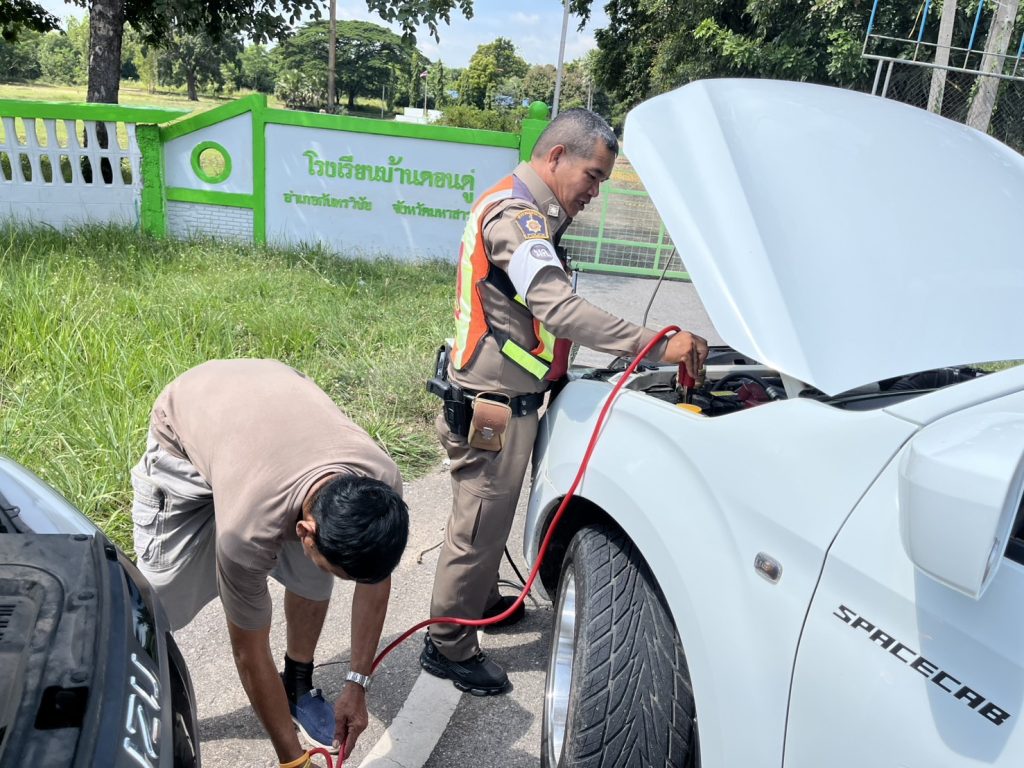 เจ้าหน้าที่ตำรวจจราจร สภ.กันทรวิชัย ได้ให้ความช่วยเหลือประชาชน รถยนต์สตาร์ทไม่ติด ด้วยการพ่วงแบตเตอรี่ให้ จนรถยนต์คันดังกล่าวสตาร์ทติด และสามารถเดินทางต่อไปได้