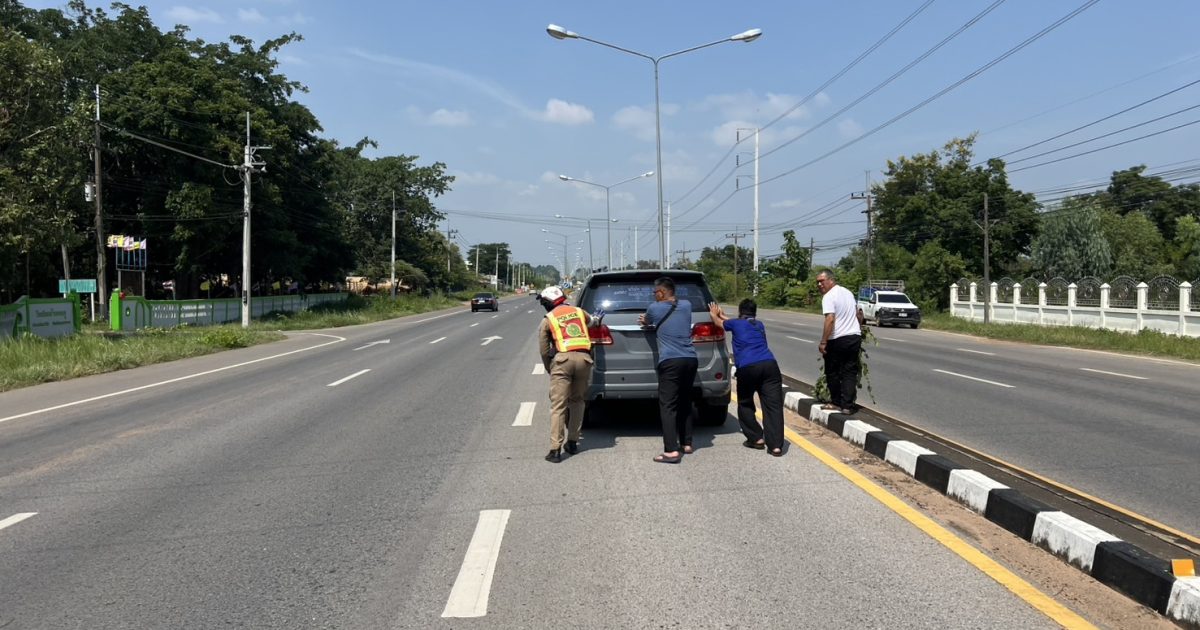 เจ้าหน้าที่ตำรวจจราจร สภ.กันทรวิชัย ให้ความช่วยเหลือประชาชน รถยนต์จอดเสียกลางถนน เกรงว่าจะเป็นอันตรายแก่ผู้ใช้รถใช้ถนน โดยช่วยเข็นเข้าข้างทาง รอรถสไลด์มายกเพื่อเข้าอู่ซ่อม