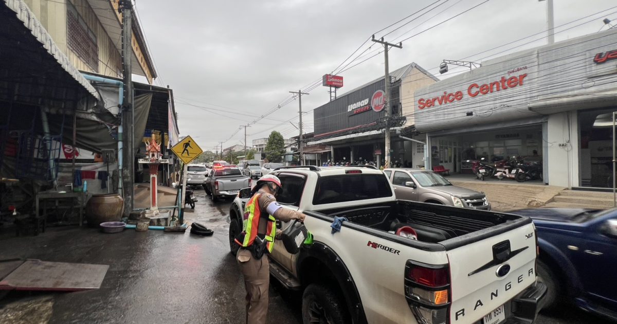 เจ้าหน้าที่ตำรวจจราจร ให้ความช่วยเหลือประชาชน รถน้ำมันหมด ไม่สามารถเดินทางต่อไปได้