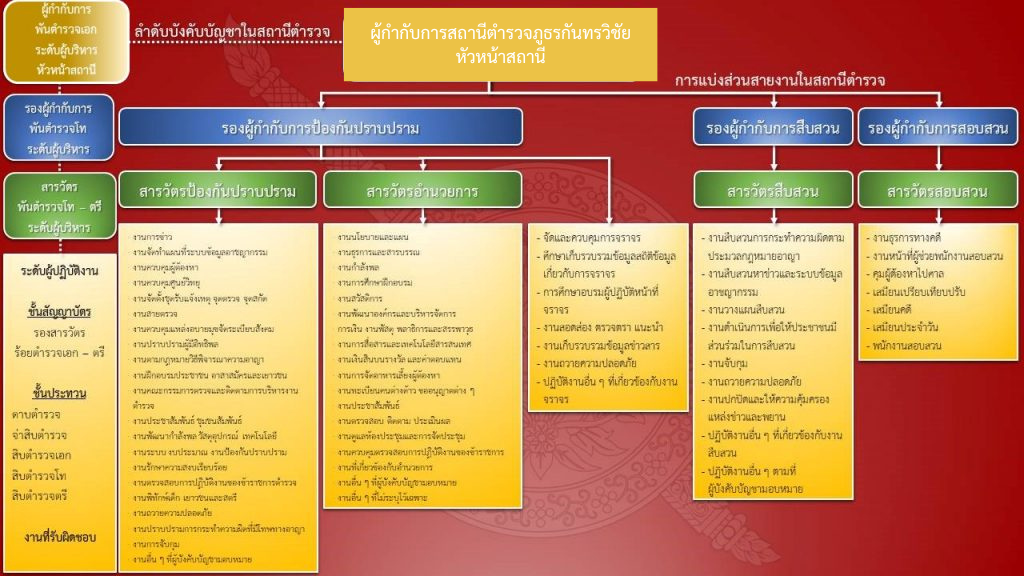 หมายเหตุ : 1) รองผู้กำกับการป้องกันปราบปราม เป็นหัวหน้างานอำนวยการ งานป้องกันปราบปราม และงานจราจร