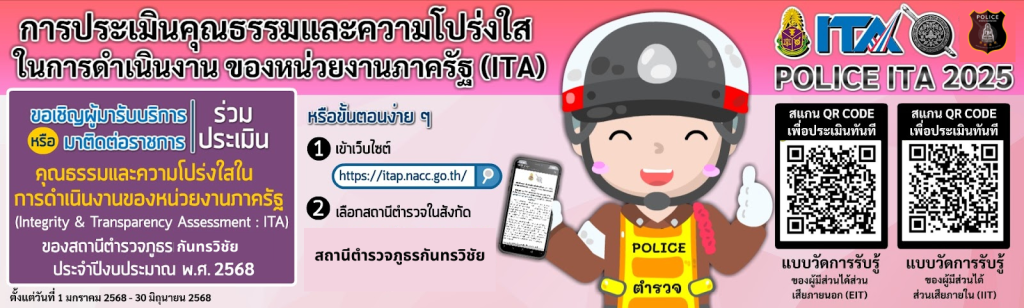 ประชาสัมพันธ์ข้อมูลการประเมินคุณธรรมและความโปร่งใสในการดำเนินงาน ของหน่วยงานภาครัฐ (Integrity & Transparency Assessment: ITA) ของสถานี สถานีตำรวจภูธรกันทรวิชัย ประจำปีงบประมาณ พ.ศ. 2568
